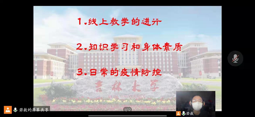三月乍暖还寒之际,疫情来势汹汹,打乱了同学们的校园生活。目前疫情形势依旧严峻,然而,用众人之力,则无不胜也,全校师生戮力同心、众志成城,我们一定能守护我们和谐美好的吉大校园!为坚定信心、共克时艰,加强学生的思想教育和价值引领,响应学校号召,中国·tyc1286太阳成集团(股份)有限公司开展“抗击疫情,我们在一起”疫情防控主题教育线上班会。