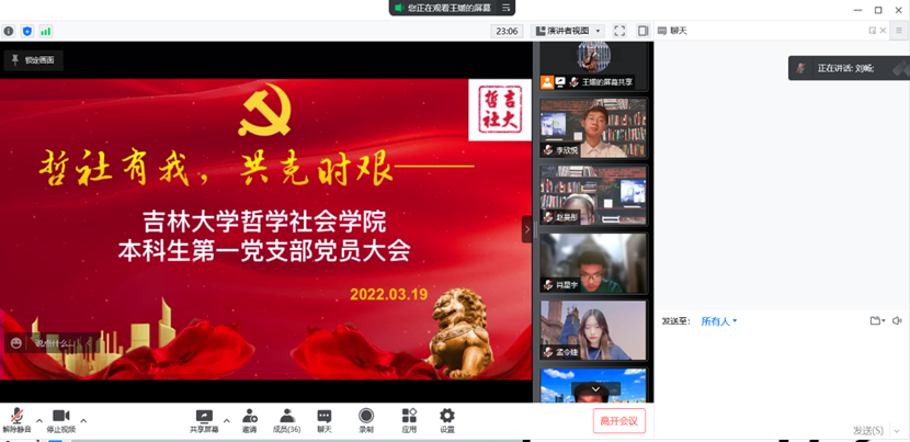 本科生第一党支部会议于3月19日20时在线上召开,本次会议由19级本科生王媛同志主持,第一党支部全体党员同志参会。大会由三部分组成,第一部分主题为“赤心向党,进步青年”。由19级本科生王媛同志宣读在抗击疫情期间表现优秀、新接收的入党积极分子人员名单。