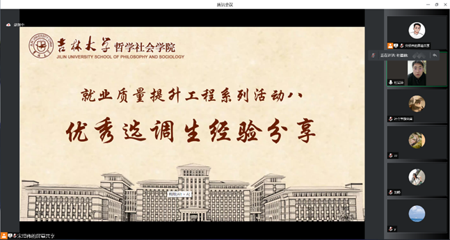 在之后的问答环节中,杜师兄和王师姐针对同学们提出的问题做出了详细耐心的解答,同时提到,“吉林大学是一个优秀的平台,从这里迈入工作岗位的同学都很优秀”,勉励大家坚定信心、努力学习,不断充实自己,磨练本领,实现高质量就业。