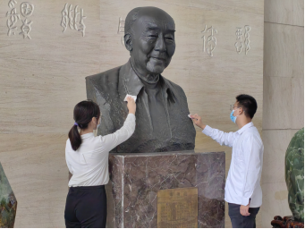 首先,学生代表们上前小心仔细地擦拭着高清海先生的雕像,追思高清海先生为吉大所做的杰出贡献。
