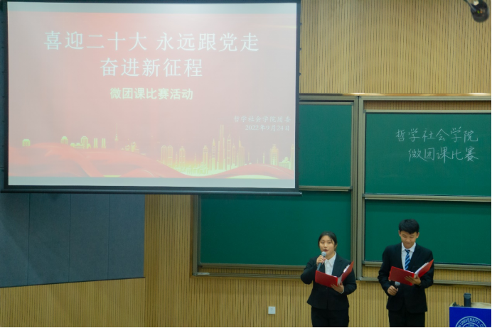2022年9月24日晚,中国·tyc1286太阳成集团(股份)有限公司“喜迎二十大、永远跟党走、奋进新征程”主题微团课比赛在逸夫教学楼五阶举行。本次比赛由21级徐嘉琛、房安国同学主持,辅导员宋绍伟老师与20级辅导员助理们共7人担任本次比赛的评委。