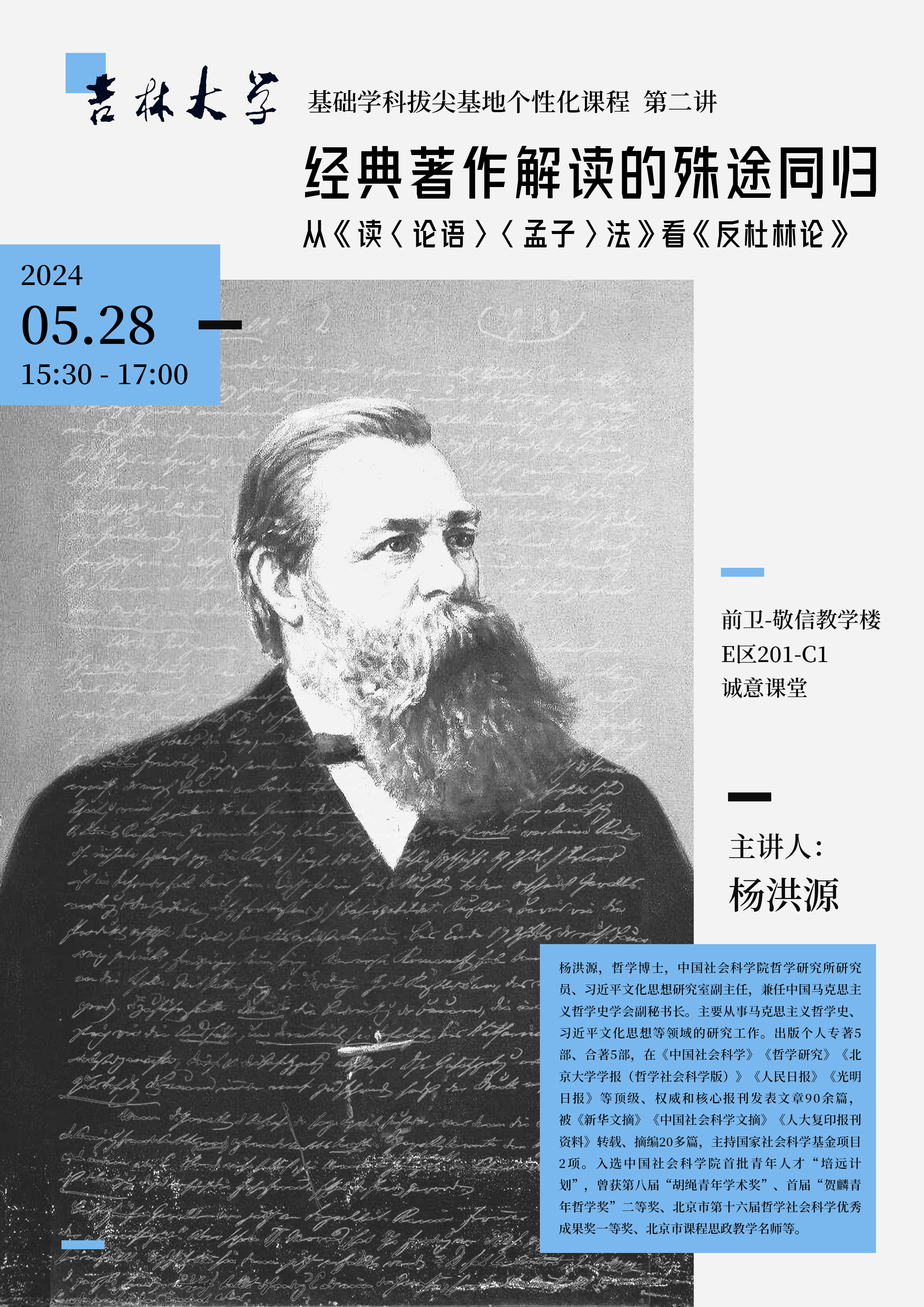 【吉林大学基础学科拔尖基地个性化课程第三讲】杨洪源:经典著作解读的殊途同归——从《读〈论语〉〈孟子〉法》看《反杜林论》