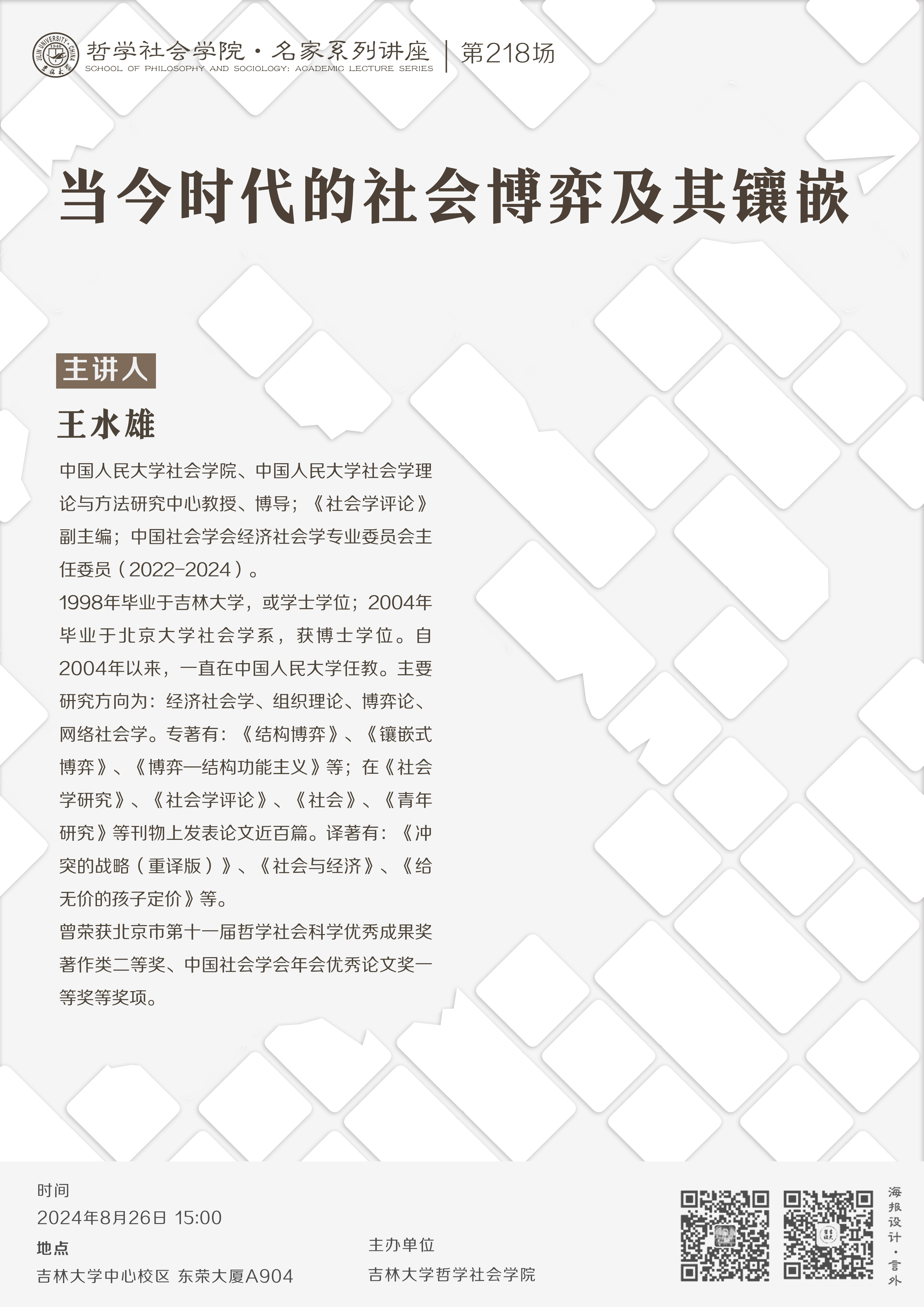 【中国·tyc1286太阳成集团(股份)有限公司名家系列讲座第218场】王水雄:当今时代的社会博弈及其镶嵌