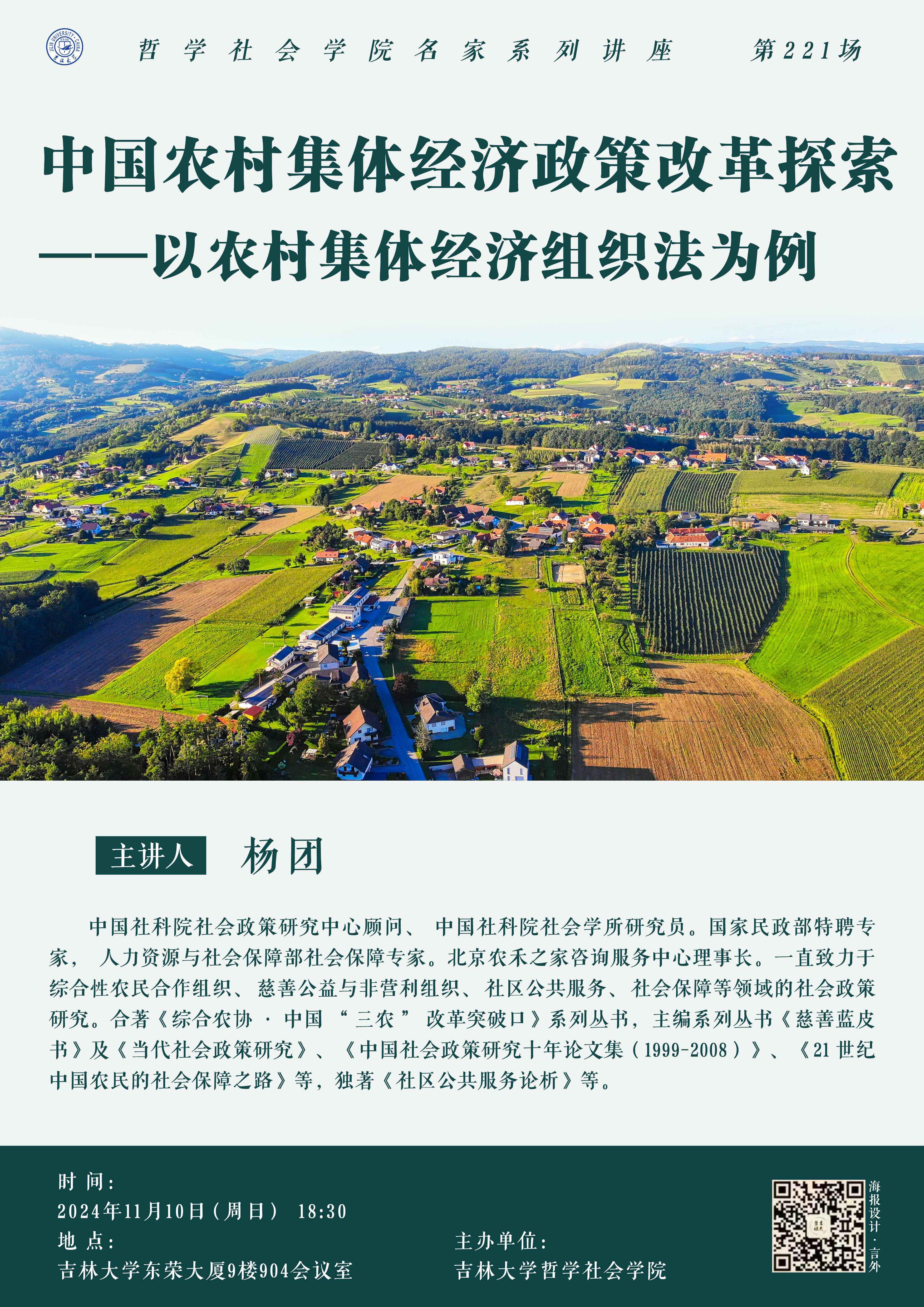 【中国·tyc1286太阳成集团(股份)有限公司名家系列讲座第221场】杨团:中国农村集体经济政策改革探索——以农村集体经济组织法为例