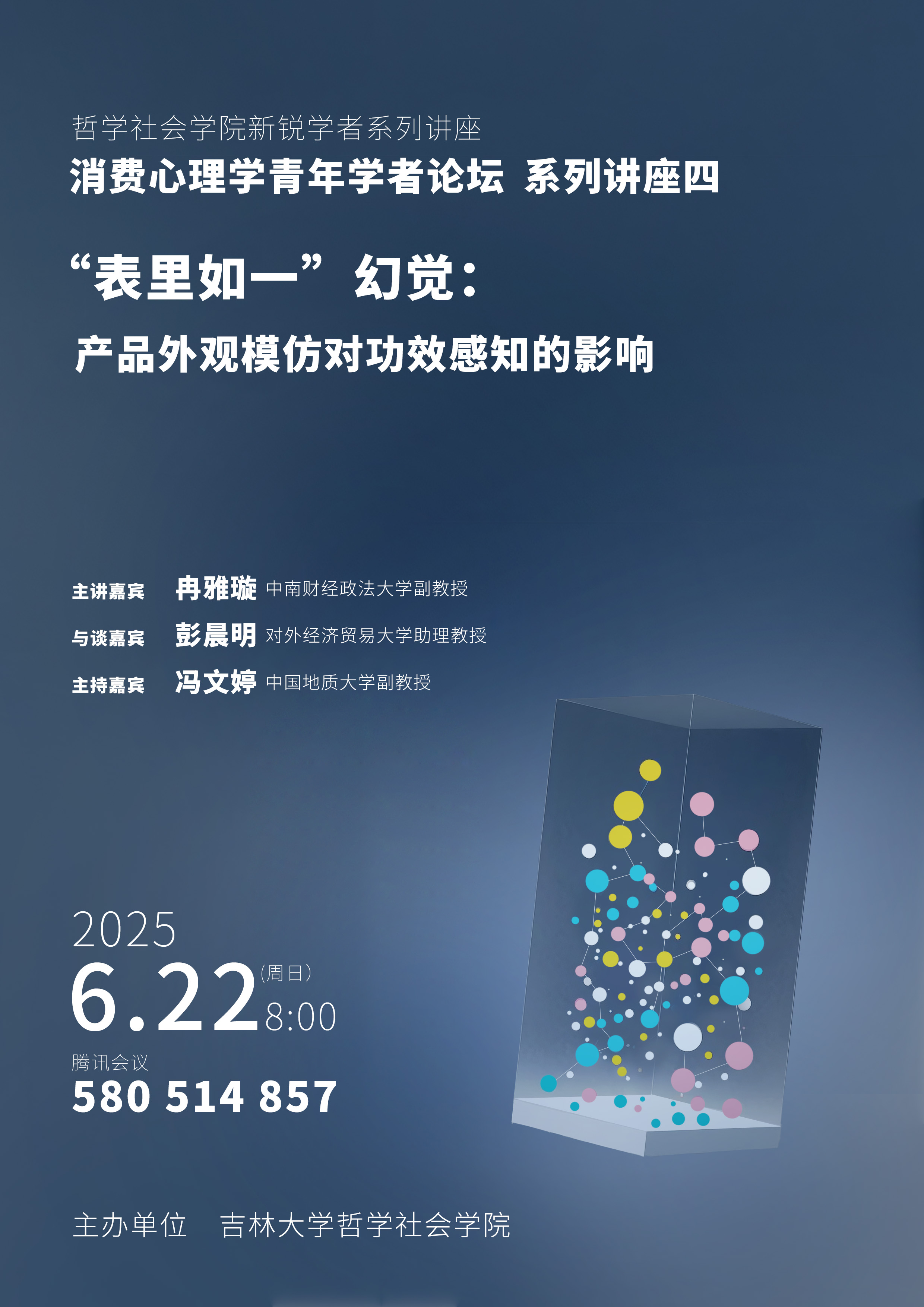 【中国·tyc1286太阳成集团(股份)有限公司新锐学者系列讲座】【“消费心理学青年学者论坛”系列讲座四】冉雅璇:“表里如一”幻觉:产品外观模仿对功效感知的影响