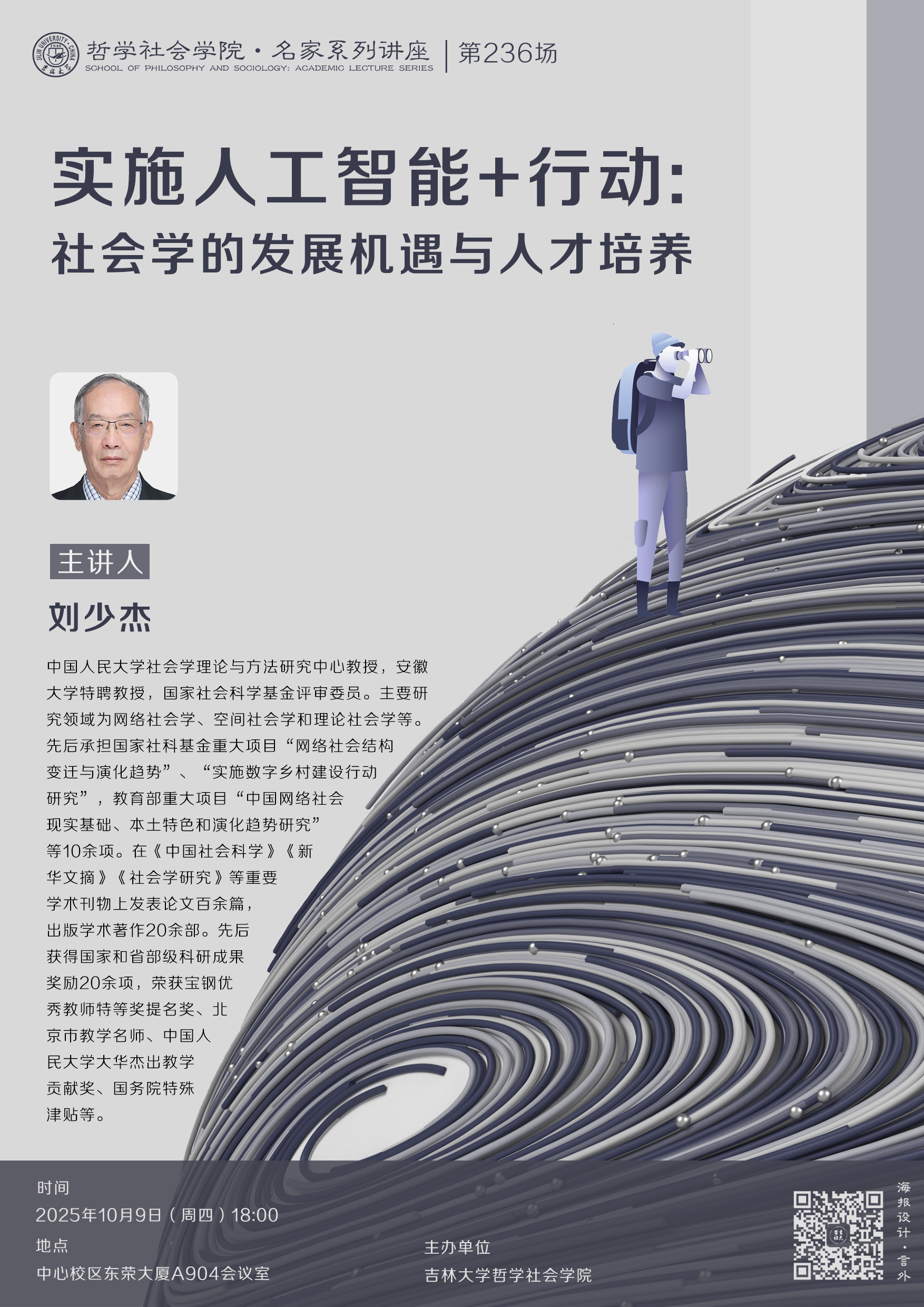 【中国·tyc1286太阳成集团(股份)有限公司名家系列讲座第236场】刘少杰:实施人工智能+行动:社会学的发展机遇与人才挑战