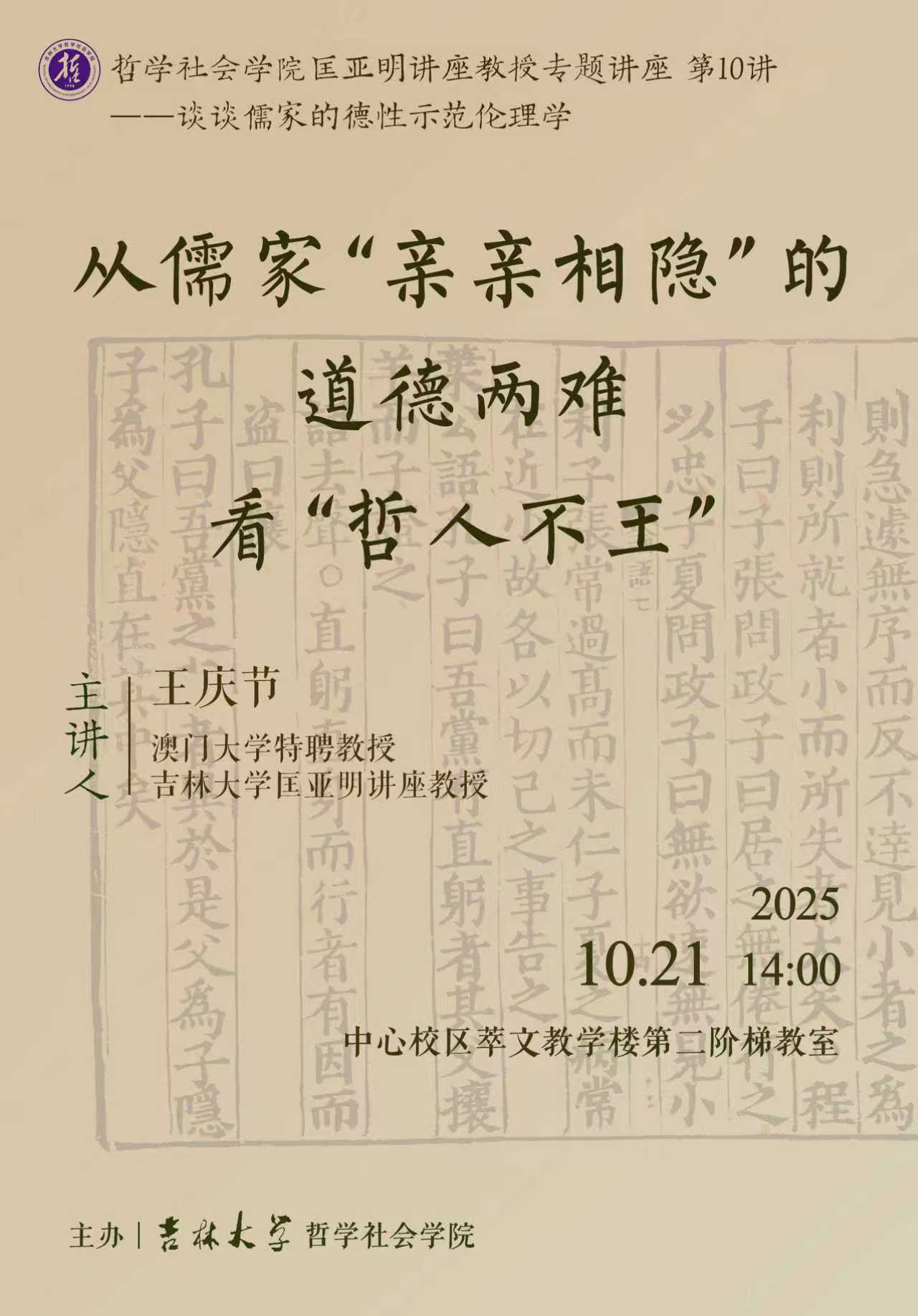 【中国·tyc1286太阳成集团(股份)有限公司匡亚明讲座教授专题讲座第9-11讲】王庆节: 谈谈儒家的德性示范伦理学