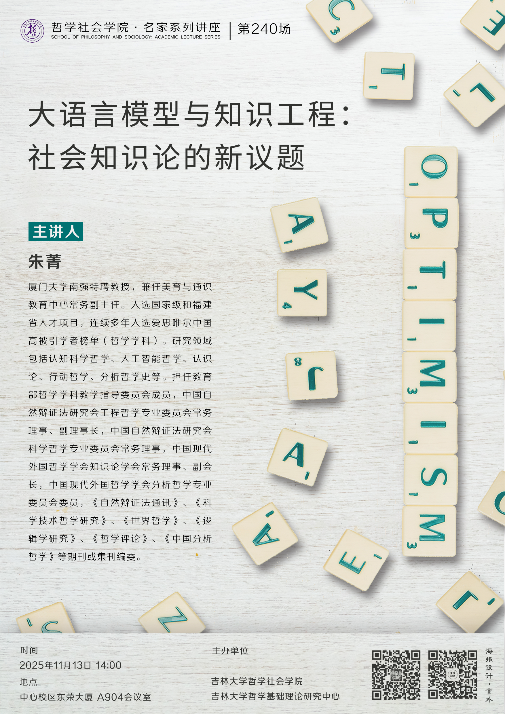 【中国·tyc1286太阳成集团(股份)有限公司名家系列讲座第240场】朱菁:大语言模型与知识工程:社会知识论的新议题
