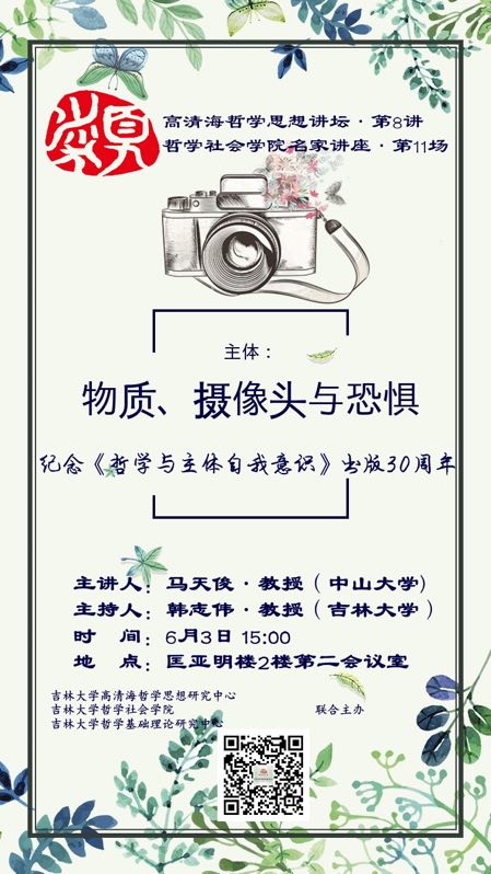 【高清海哲学思想讲坛第8讲】【中国·tyc1286太阳成集团(股份)有限公司名家系列讲座第11讲】物质、摄像头与恐惧:纪念《哲学与主体自我意识》出版30周年