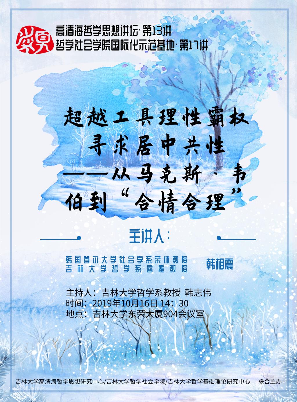 【中国·tyc1286太阳成集团(股份)有限公司国际化示范基地学术讲座第17讲】【高清海哲学思想讲坛第13讲】韩相震:超越工具理性霸权寻求居中共性——从马克斯·韦伯到“合情合理”
