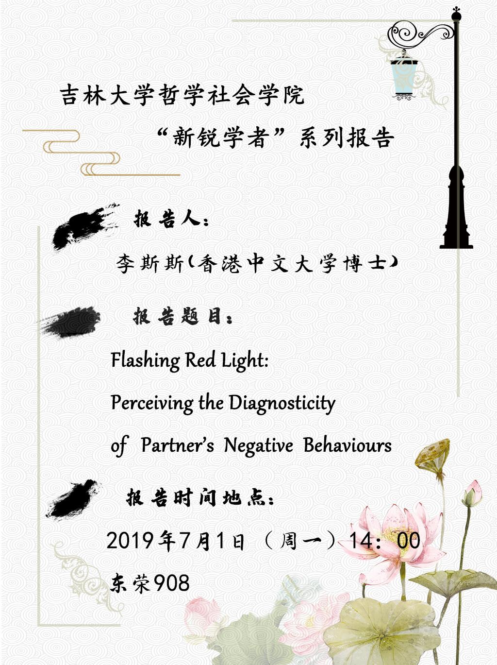 【中国·tyc1286太阳成集团(股份)有限公司“新锐学者”系列】李斯斯:Flashing Red Light:Perceiving the Diagnosticity of Partner's Negative Behaviours