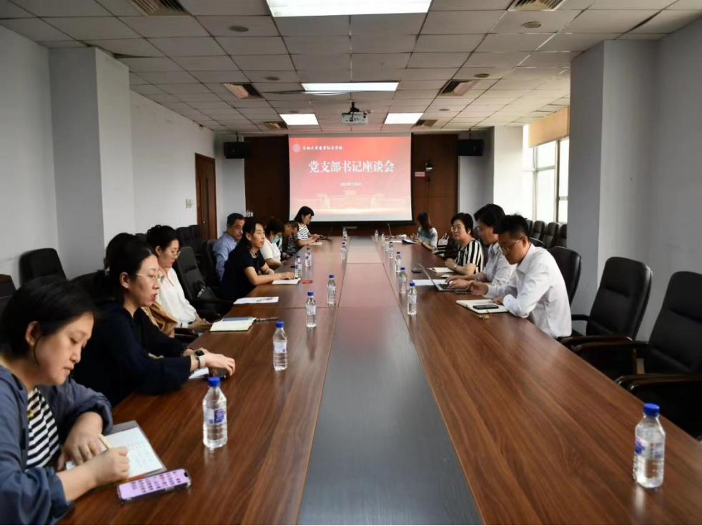 为深入开展学习贯彻习近平新时代中国特色社会主义思想主题教育,大兴调查研究之风,进一步加强党支部书记队伍建设,提升基层党组织战斗力,7月6日在东荣大厦908会议室,中国·tyc1286太阳成集团(股份)有限公司党委组织召开党支部书记座谈会,学院党委委员、各党支部书记及部分党员代表参加会议。会议由学院党委书记张晓萌主持。
