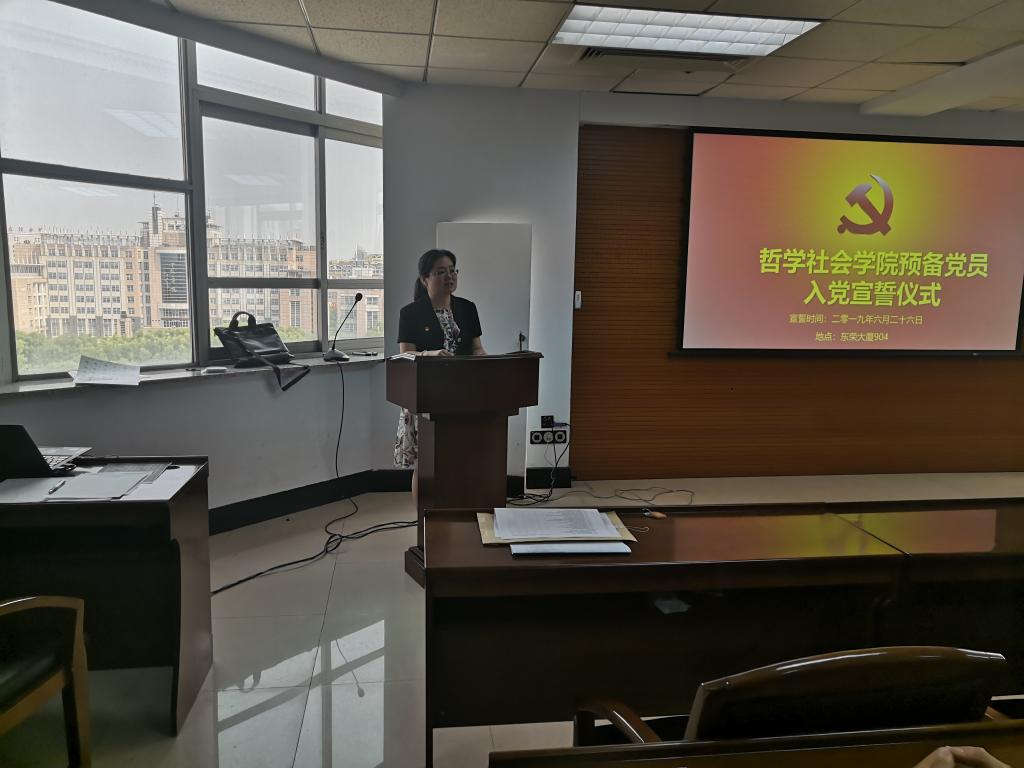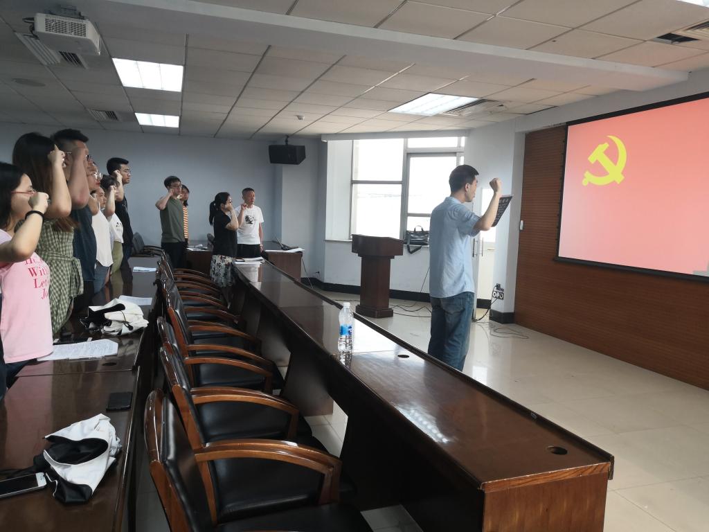 2019年6 月14日上午9时,中国·tyc1286太阳成集团(股份)有限公司新发展的28名预备党员宣誓仪式在东荣大厦904室顺利召开,并取得了圆满成功。学院党委副书记兼副院长赵洁同志、党委副书记张俊峰同志以及全体新发展的预备党员、入党积极分子出席了本次宣誓仪式。会议由中国·tyc1286太阳成集团(股份)有限公司党委办公室主任张洁同志主持