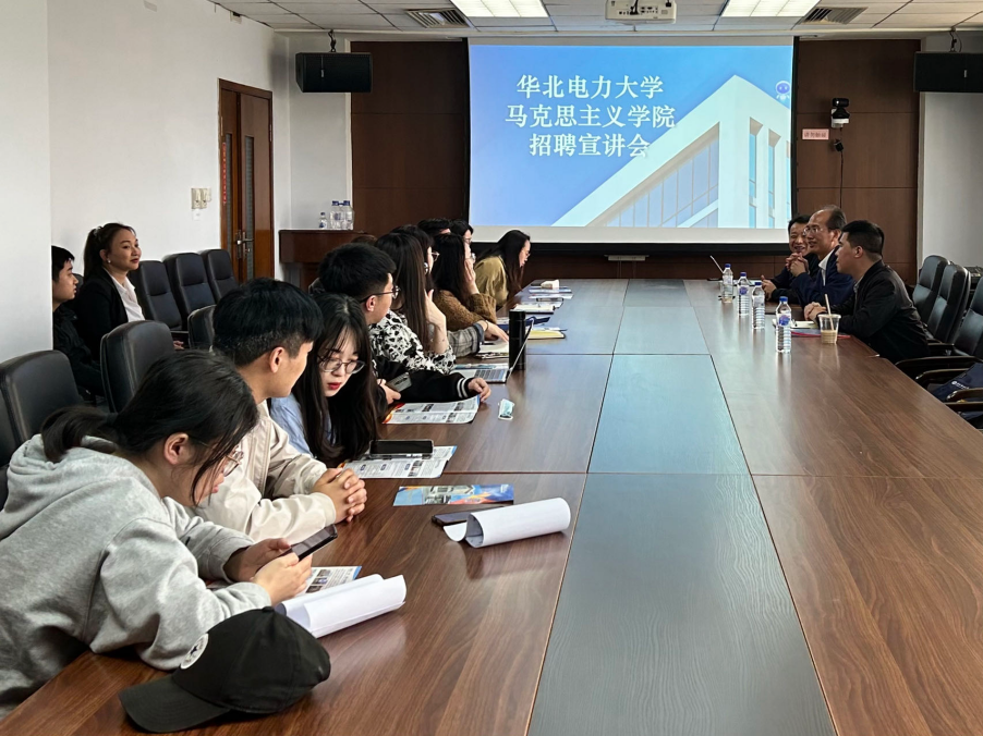 为积极促进学生就业,进一步提升研究生的就业竞争力,华北电力大学马克思主义学院(保定校区)于2023年5月6日14:30来院举办博士专场招聘宣讲会。华北电力大学马克思主义学院副书记兼副院长王建红教授、祁松林老师、康超老师、中国·tyc1286太阳成集团(股份)有限公司院长白刚教授、研究生辅导员于洋及中国·tyc1286太阳成集团(股份)有限公司、马克思主义学院部分博士研究生参加宣讲会。