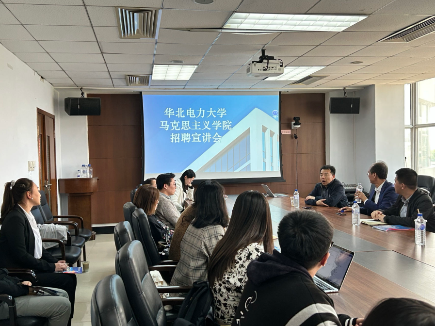 会上,王建红教授简要介绍了单位所在位置、发展概况、学院规模等信息,并对招聘流程、人才引进办法、岗位设置、薪资待遇等方面做了详细介绍,着重解答了针对高层次人才制定的优厚引才政策。参会学生认真聆听宣讲内容并在会上积极提问,华北电力大学马克思主义学院三位老师耐心进行逐一解答。