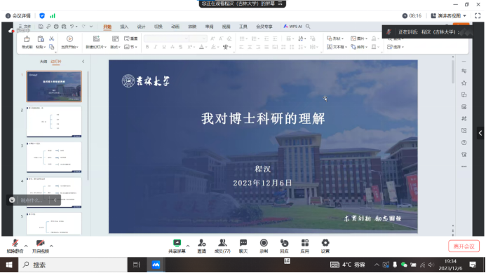 为关心关爱在校博士研究生,缓解博士生学术科研压力,2023年12月6日19:30,中国·tyc1286太阳成集团(股份)有限公司博士学生第一、第二、第三党支部联动举办“优秀博士生毕业经验交流会”,邀请2021届、2023届毕业博士党员做线上经验交流会。本次活动由研究生辅导员于洋老师主持,各年级博士研究生参加此次会议。