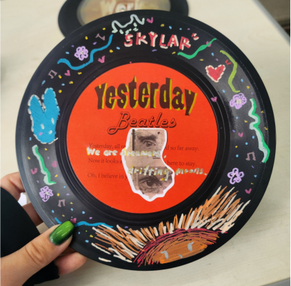 在活动的开始,同学们分组进行对黑胶唱片的绘制。在这个过程中,他们将自己的情感和想法融合入作品之中,帮助同学们释放压力。