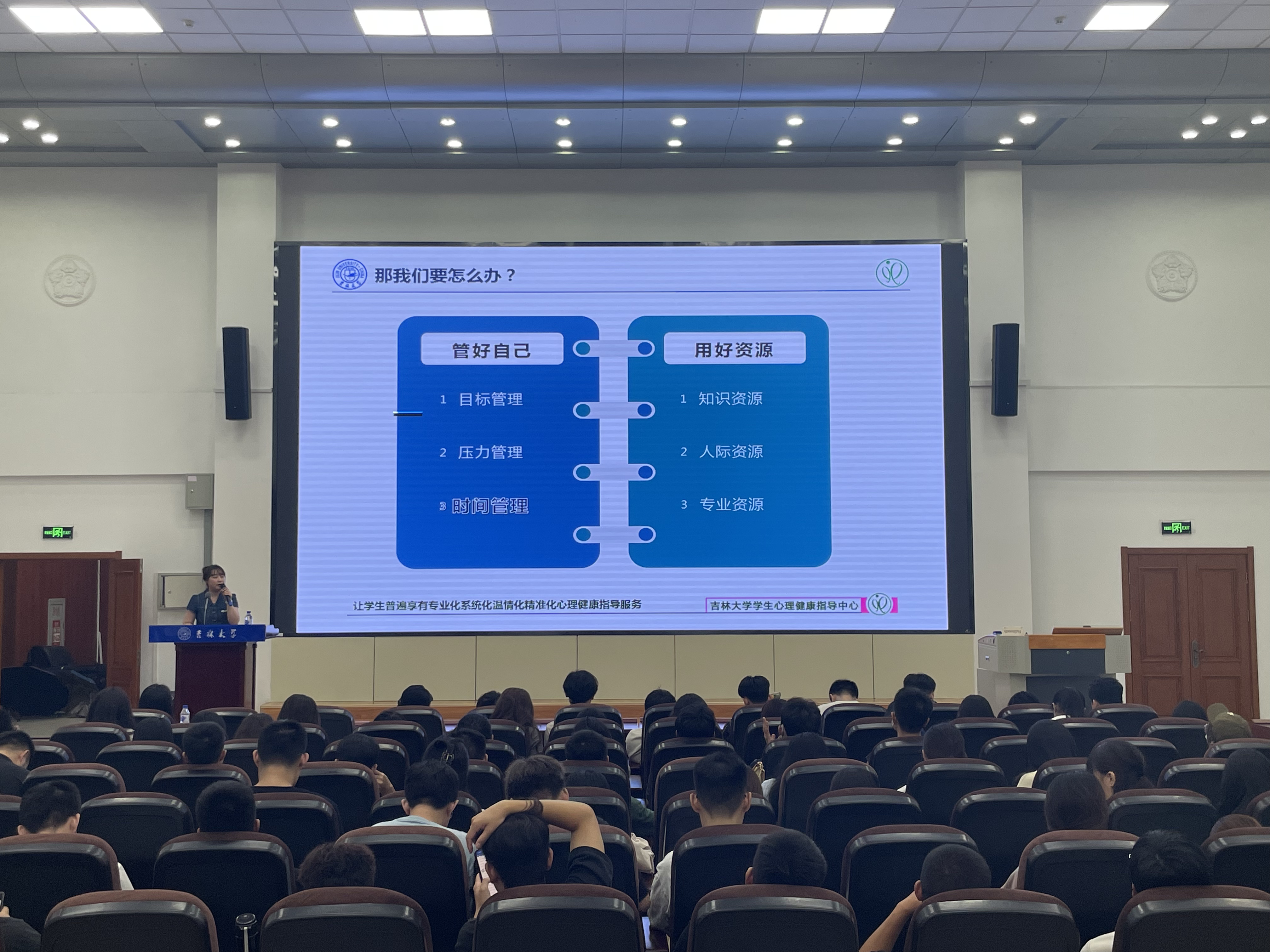最后,王老师介绍了知识资源、人际资源、专业资源的概念定义、维护方式、寻求方法,向研究生新生讲解了如何善用身边资源实现对自身心理健康的有效维护,并介绍了学校心理咨询的预约途径。