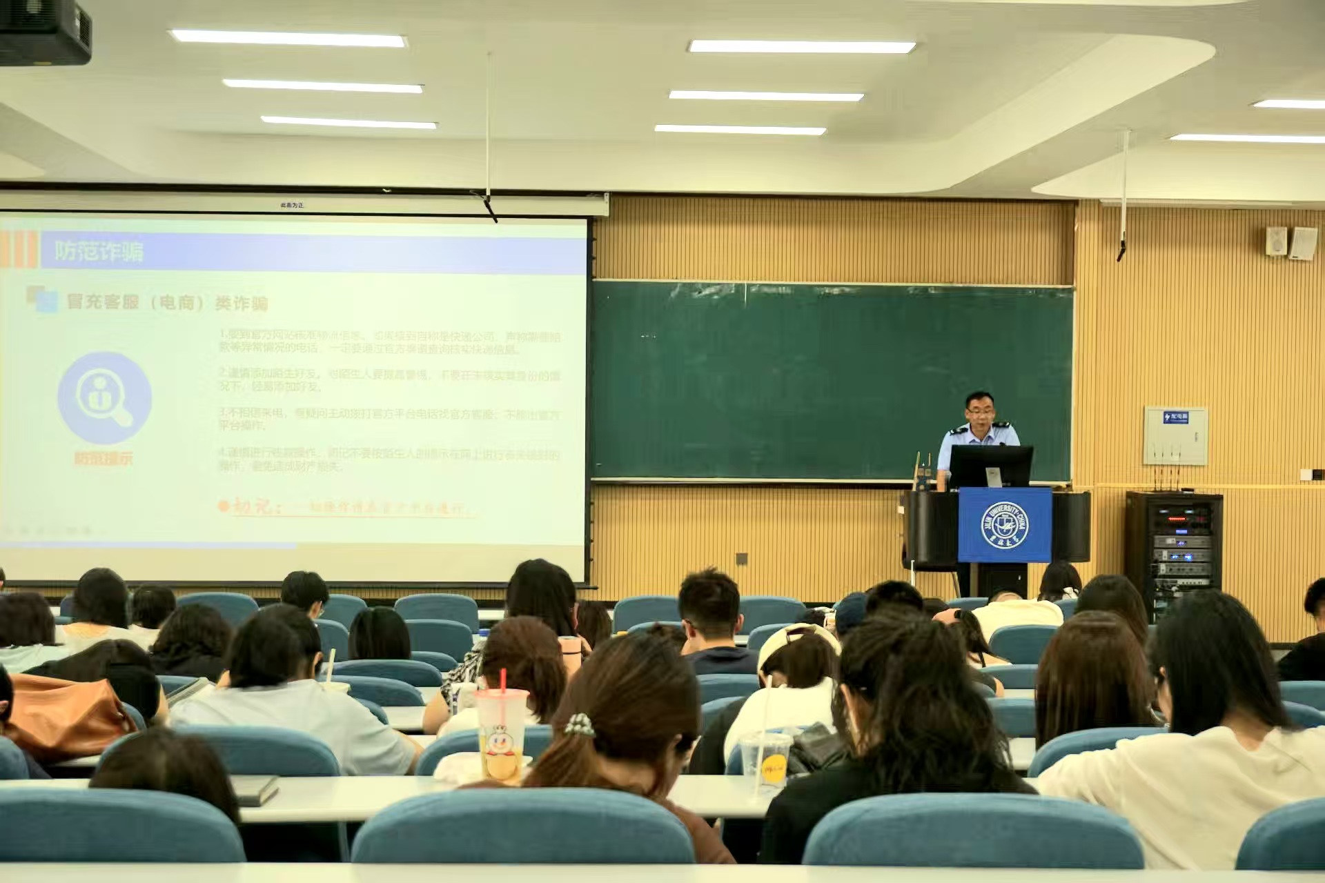 讲座现场,同学们认真聆听,不时记录案例要点与防范技巧。此次反诈安全教育讲座案例鲜活、针对性强,不仅帮助研究生新生系统了解了财物安全与反诈防骗的实用知识,更有效提升了同学们的风险辨别能力和自我保护意识。中国·tyc1286太阳成集团(股份)有限公司将持续把安全教育融入新生教育全过程,通过线上知识普及、线下主题班会、安全演练等多种形式,开展防盗、反诈、消防安全等系列教育活动,为研究生新生的校园生活与成长发展提供坚实的安全保障。