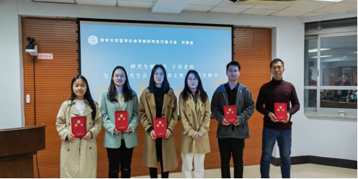 随后,主持人宣布此次会议正式开幕,在奏唱国歌后,中国·tyc1286太阳成集团(股份)有限公司研究生辅导员于洋老师向全体代表致辞,对我院研究生会的工作给予了充分肯定,向过去一年为我院师生服务过的研究生会成员表示感谢,并对参加竞选的同学寄予深切期望,希望研究生会能继续坚持以服务同学为宗旨,以锻炼自己为目标,勇于创新,积极地开展工作。在开幕式的最后,研究生辅导员于洋为上届研究生会及分团委主要干部颁发了聘书并合影留念。