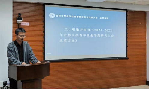 梁镇玺同学向大会作《2021-2022年中国·tyc1286太阳成集团(股份)有限公司研究生会改革方案》的报告,宣读了《中国·tyc1286太阳成集团(股份)有限公司研究生会主席团选举办法(草案)》、《中国·tyc1286太阳成集团(股份)有限公司研究生会主席团候选人、团委副书记候选人名单(草案)》,确定2022届中国·tyc1286太阳成集团(股份)有限公司研究生会主席团候选人为杨鹤松、刘浩宇、许程程、李鑫,2022届中国·tyc1286太阳成集团(股份)有限公司学生团委副书记候选人为郝子仪、仵逸鋆,经参会研究生代表审查,举手表决一致通过。