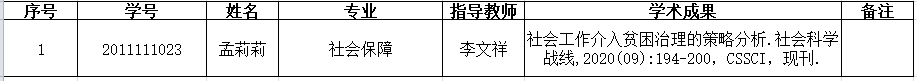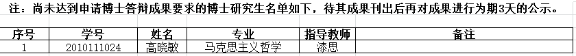 根据学校学位评定委员会办公室《关于2021年上半年博士、硕士学位论文答辩工作安排的通知》要求,并结合我院的实际情况,现将申请2021年5月末答辩的社会保障专业孟莉莉同学、马克思主义哲学专业高晓敏同学的学术成果情况进行公示。