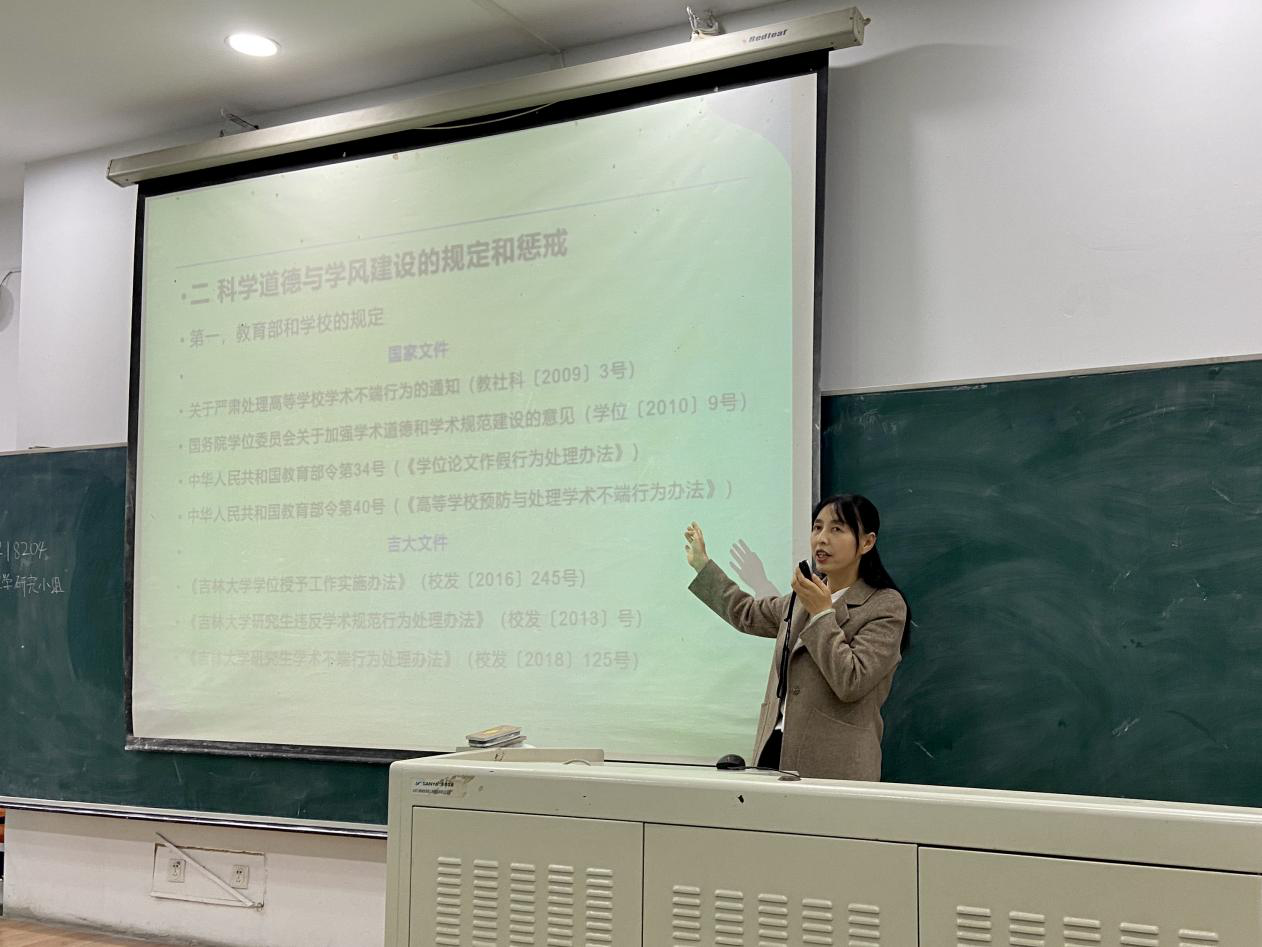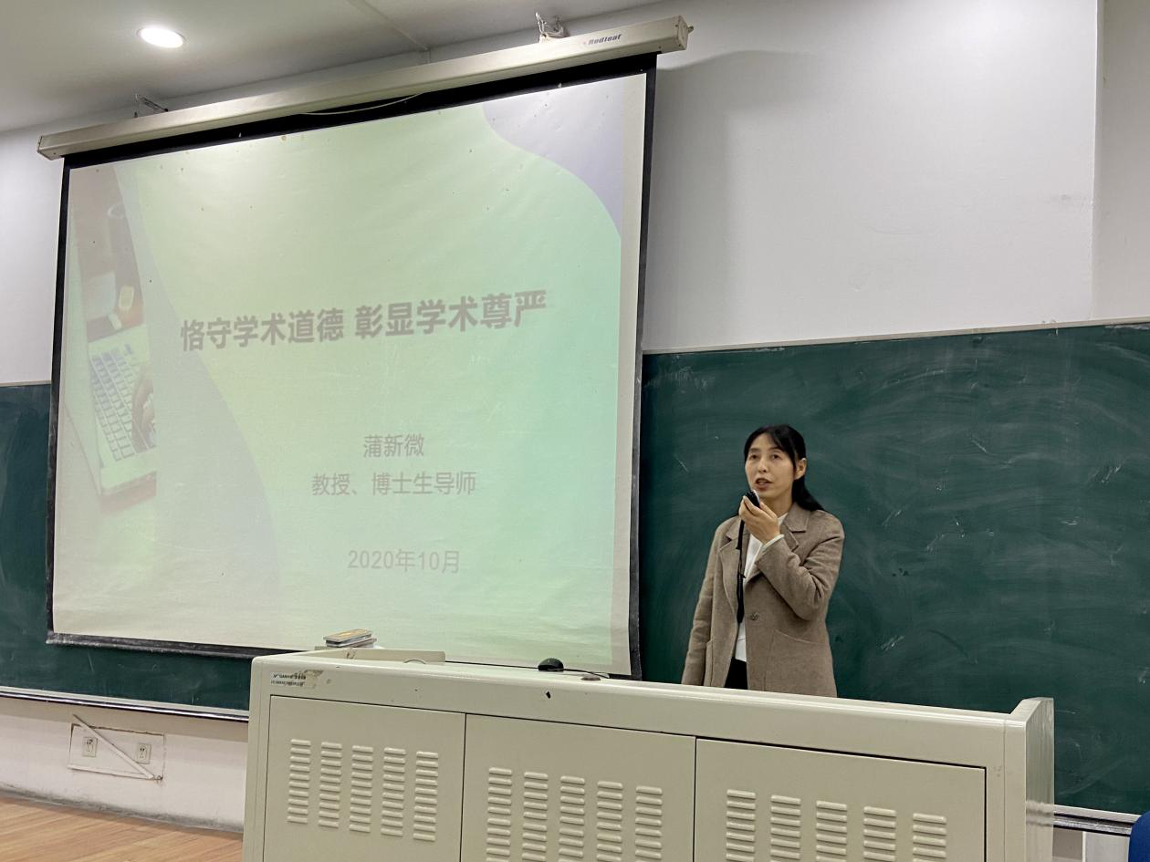 接下来,由中国·tyc1286太阳成集团(股份)有限公司的蒲新微教授为同学们开展了主题为“恪守学术道德,彰显学术尊严”的学风教育专题讲座。