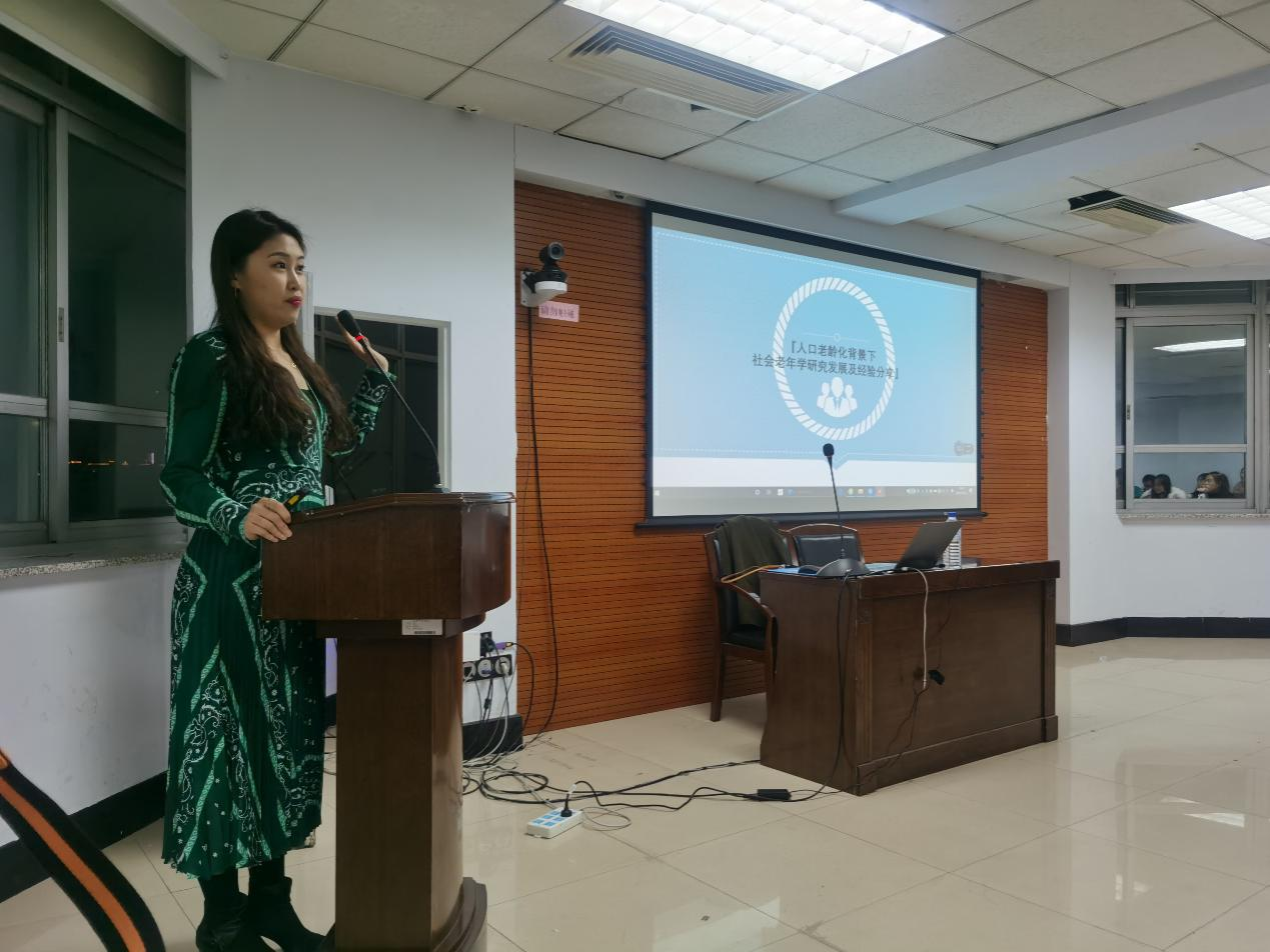 付媛媛副教授指出人口老龄化是全球需要面临的问题,我国老龄化处于加速阶段,并且随着医疗卫生条件的提高、营养更加全面,人口预期寿命在延长,这对社会保障发展提出了严峻挑战。在系统性回顾我国养老服务政策发展以及梳理相关研究基础上指出居家及社区照料相较于机构养老更加适合现阶段我国老龄化的发展与应对。同时,付媛媛副教授对WHO提出的老龄化概念进行了深入解析,指出目前长期照护中存在家庭照料功能弱化、机构照料无法满足精神慰藉,居家及社区照料有利于健康,减轻家庭负担的结论。在长期照料的研究中必须要将问题置于社会老年学的研究背景中,社会老年学的发展方向是多学科融合的研究,并指出要在基础研究的基础上做干预研究,充分挖掘数据中的信息。最后,付媛媛老师结合自己研究长期照护的科研实践为与会师生进一步讲述了如何进行论文选题、如何找到学术兴趣点和空白点、如何推进研究。