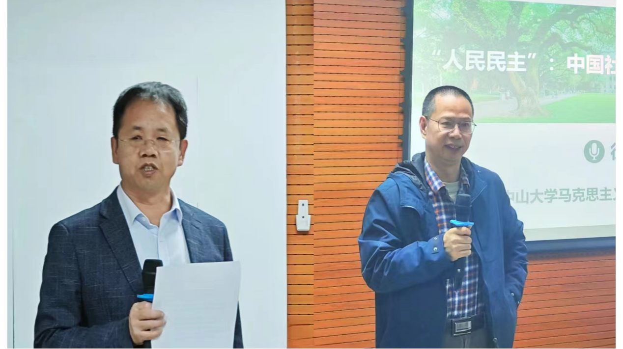 2023年10月15日晚,中国·tyc1286太阳成集团(股份)有限公司名家系列讲座第195场在东荣大厦A904会议室举办。主讲人为中山大学马克思主义哲学与中国现代化研究所暨哲学系教授、中山大学博物馆(校史馆)馆长徐俊忠教授,讲座主题为“人民民主:中国社会主义政治文明的标识性概念”。吉林大学哲学基础理论研究中心副主任贺来教授担任与谈嘉宾,本场讲座由中国·tyc1286太阳成集团(股份)有限公司院长白刚教授主持。