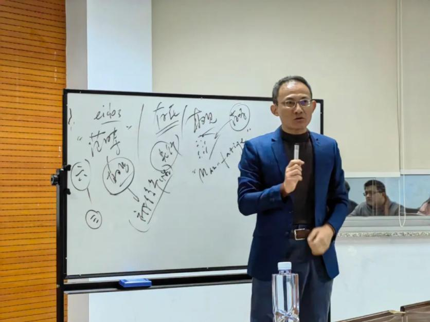 马迎辉老师首先通过“范畴直观”引入讲座主题。他指出普遍直观和范畴直观建立在整体与部分的关系之上,本质直观才是纯粹形式范畴的真正体现,向本质直观的突进体现了现象学从描述心理学向超越论现象学的突破。讲座内容分为四个部分:一、《逻辑研究》当中的范畴直观;二、本质直观的提出;三、本质直观的结构或操作过程;四、结语。