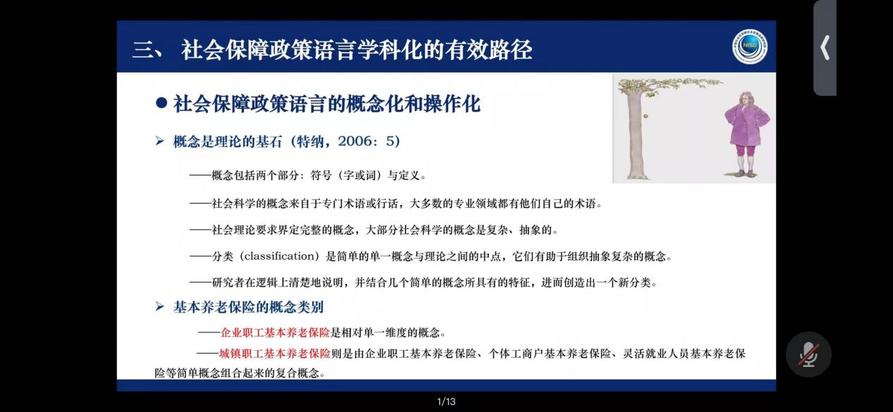 最后,韩教授做出总结:概念就像大厦的基石,地基打不好,大厦就不牢固。我们必须对社会保障政策语言高度重视,严肃遵循逻辑推理规则。社会保障的政策语言必须走向学科化、概念化、操作化。