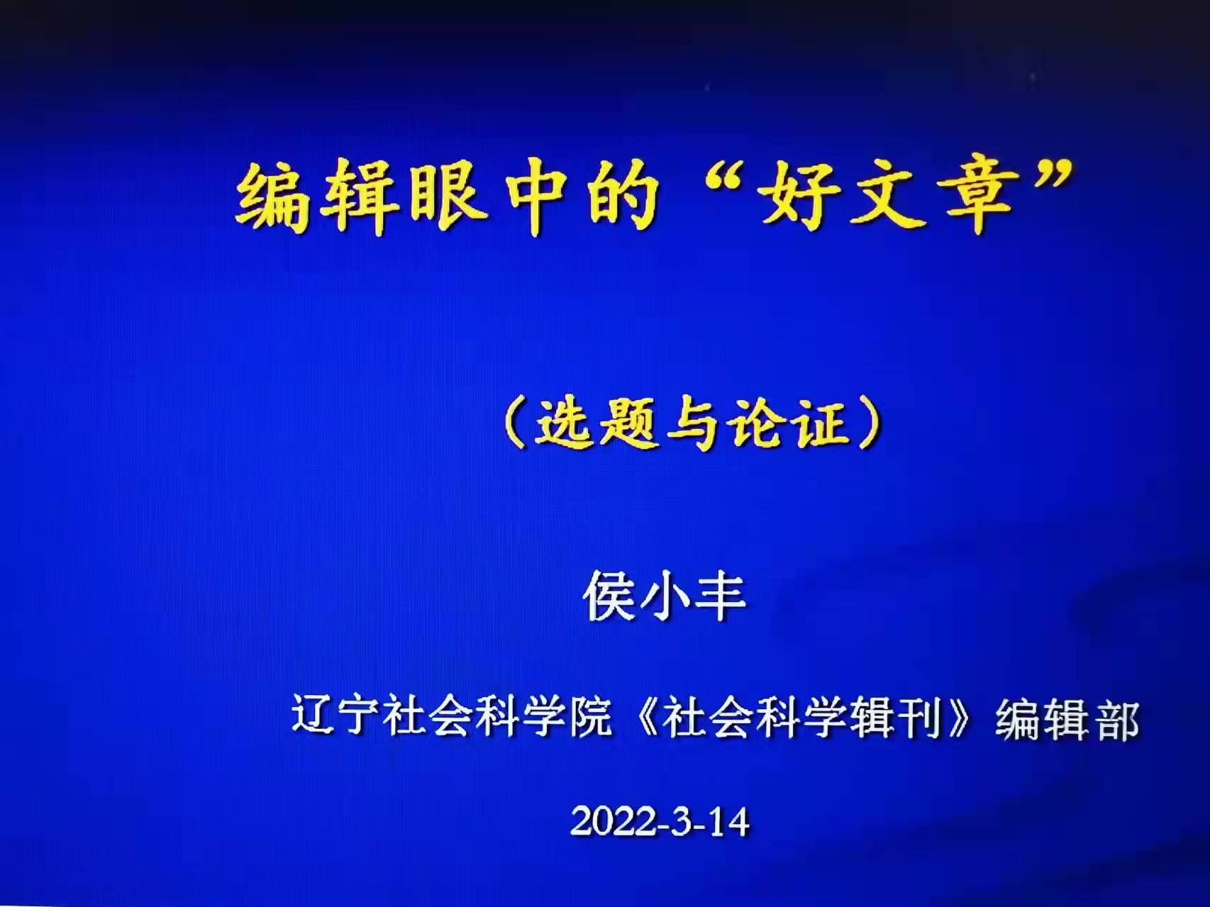 2022年3月14日晚,辽宁社会科学院研究员、《社会科学辑刊》哲学编辑侯小丰研究员应邀做中国·tyc1286太阳成集团(股份)有限公司名家系列讲座(第151场)。讲座题为“编辑眼中的‘好文章(选题与论证)’”。本次讲座以线上腾讯会议形式举办,由吉林大学哲学系主任白刚教授点评,中国·tyc1286太阳成集团(股份)有限公司李慧娟教授主持。