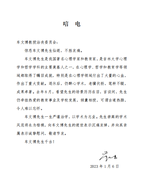 吉林大学蔡立东副校长唁电