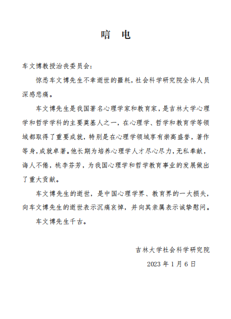 吉林大学社会科学研究院唁电