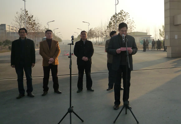 上午9点,揭牌仪式在学院西大门隆重举行。圆通速递有限公司河南分公司总经理田利涛、副总经理高艳峰、院领导毋虎城、席振修、信息工程系主任魏道清和信息工程系部分师生参加了揭牌仪式,共同见证了这一历史时刻,仪式由副院长席振修主持。