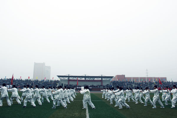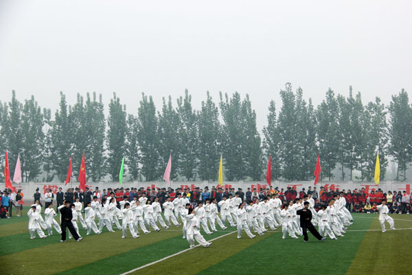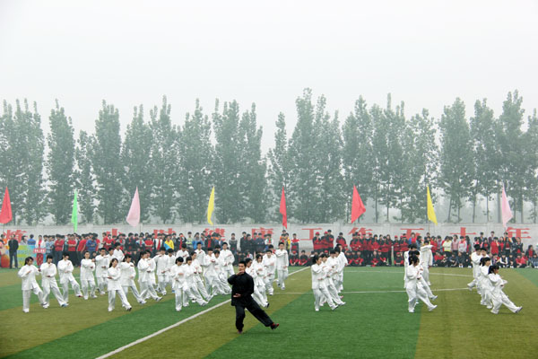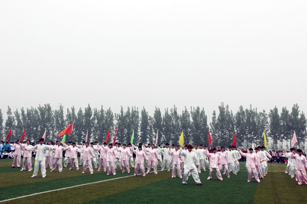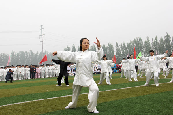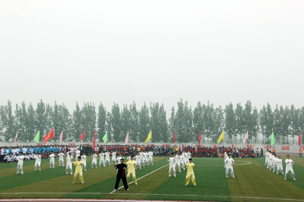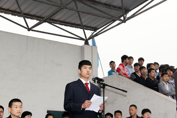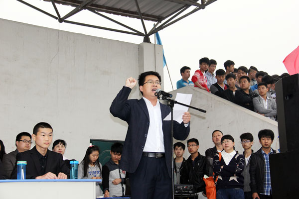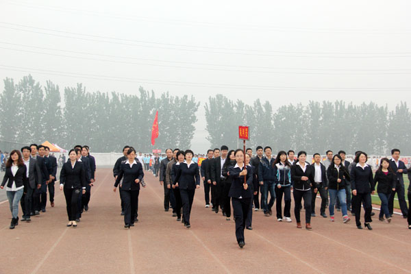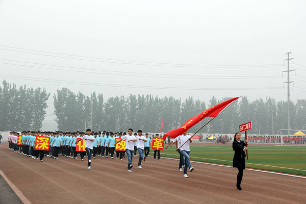 开幕式上,副校长毋虎城致开幕词。他首先代表学院党政领导及全校教职员工向运动员、裁判员致以亲切的问候和崇高的敬意!向为本次田径运动会筹备工作付出辛勤劳动的工作人员表示衷心的感谢!毋校长说,2014年是我院实施“十二五”规划的爬坡赶超年,是我院全面落实“三年行动计划”的关键年,也是我院继续深化教育教学改革,全面实施“教学质量工程”活动年;组织和举办好本届田径运动会,是对我院党的群众路线教育实践活动成果的一次检验,是对广大师生员工弘扬学院精神,增强集体荣誉感和凝聚力的一次动员;对进一步细化、落实“三年行动计划”,对进一步深化教育教学改革,全面提高教育教学质量,进一步加强精细化管理,有着十分重要的意义。希望全体裁判员恪尽职守、严肃认真、秉公评判;希望全体运动员要以饱满的精神、昂扬的斗志、顽强的毅力投身每场赛事,安全参赛、文明参赛、规范参赛;希望全体工作人员要认真维护安全、积极工作、热情服务。之后,运动员代表和裁判员代表分别代表运动员和裁判员进行了宣誓,他们表示将严格遵守竞赛规则和裁判员纪律,发扬团结协作、顽强拼搏、奋勇争先的精神,圆满完成各项比赛任务。各系、区代表队献上了精彩太极拳表演,充分展现出力与美及当代大学生积极进取的精神风貌。精彩的表演赢得了场上观众们热烈的掌声和欢呼声!