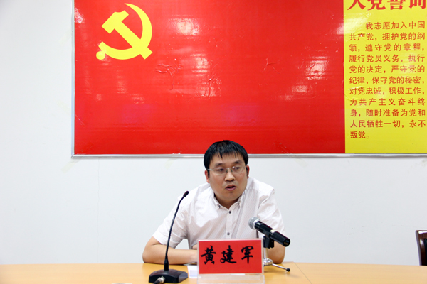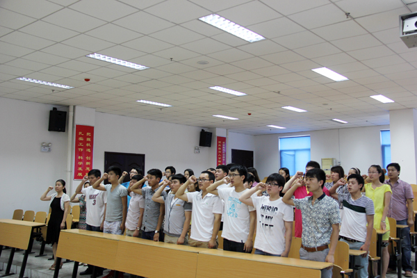 大会在国际歌声中拉开序幕。首先,组织人事处李海清同志宣读了我院2014年转正人员名单及新发展人员名单。然后,30位新发展党员面对鲜艳的党旗,在领誓人李雪莲同志带领下庄严宣誓,贺子杏同志监誓。接下来由祝慧宁同志代表新党员发言。最后,黄建军同志发表讲话。黄书记首先对新发展党员表示祝贺,然后给新发展党员提出三个希望,希望大家能继续加强对政治的学习,关心国家发展,提高个人的政治素养;希望大家能认真学习专业知识,认真对待考试,起好先锋模范作用;希望大家平时严格要求自己,规范自己的行为,做个有修养的人。