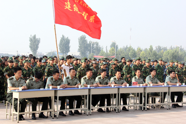 中国人民解放军预备役部队409团参谋长路保军少校在会上做动员讲话,要求军训教官要认真履行职责,给同学们做好榜样,让同学们掌握相应的军事知识和技能,养成雷厉风行的军人作风和高尚的道德情操,并希望同学们通过这次军训继承和发扬艰苦奋斗的精神,提高思想政治觉悟,增强集体主义精神和组织纪律观念,增强国防观念,磨练意志,努力拼搏,圆满完成军训任务。学院教师代表丁军猛、老生代表李冲和新生代表来静分别在大会上发言。