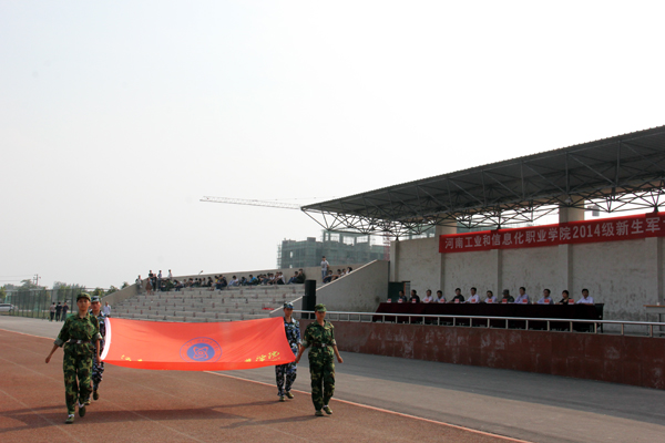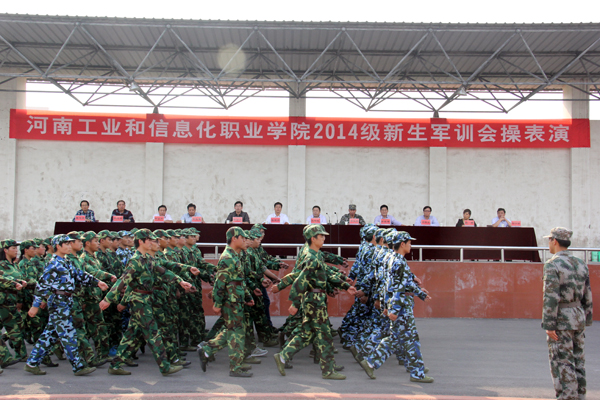 全体2014级学生组成了12个受阅方阵,以严整的军容军姿依次通过主席台,展示半个月来的军训成果。立正、稍息、敬礼……在军训方阵表演中,同学们动作整齐、口号嘹亮、步伐稳健、英姿飒爽,充分展现了我院学生积极进取、昂扬向上、敢于拼搏、永往直前的精神风貌和豪情壮志。