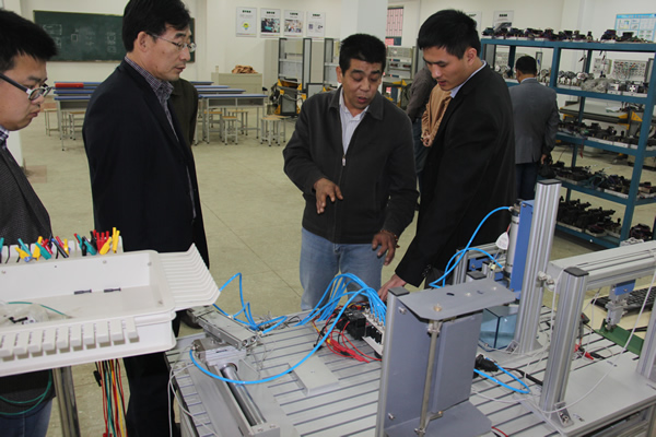 10月27日28日,河南省教育厅中德模式教学项目办华老师、范老师和张老师三位专家来我院检查指导机电一体化中德教学班的开办工作。
