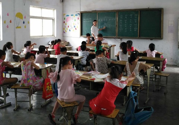 志愿者为老催庄儿童辅导作业
