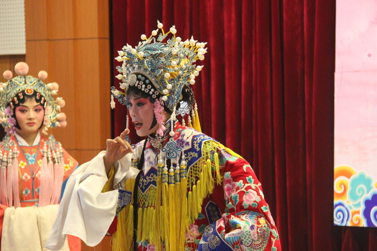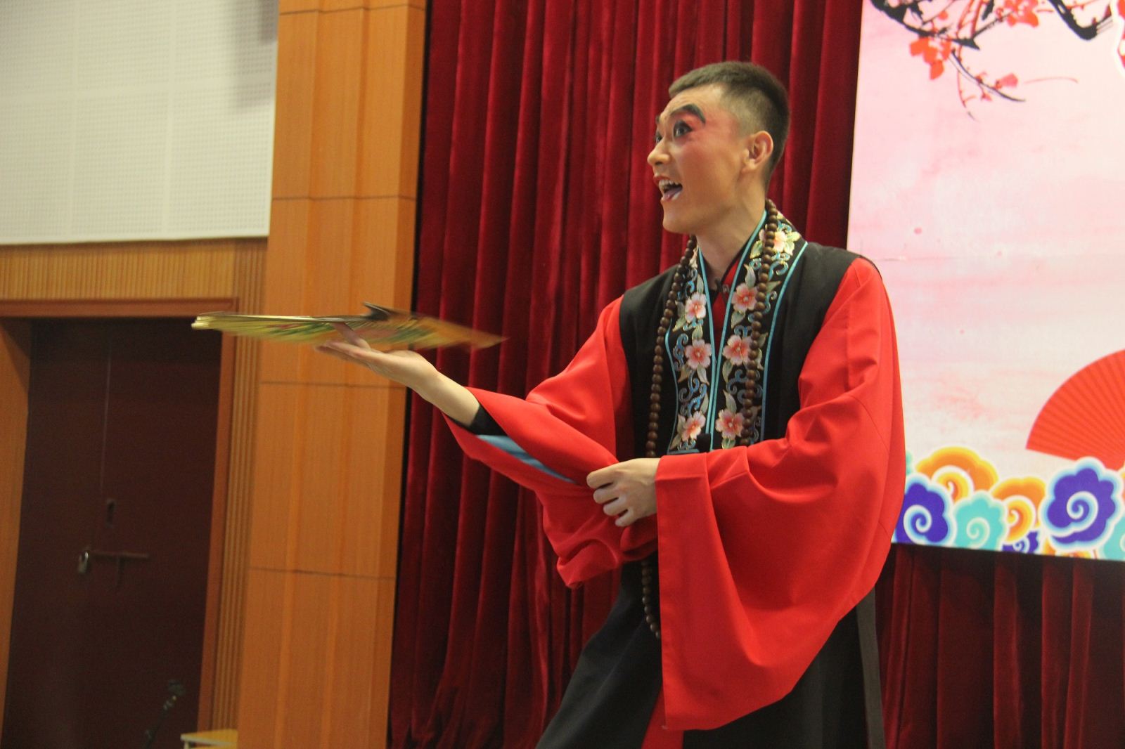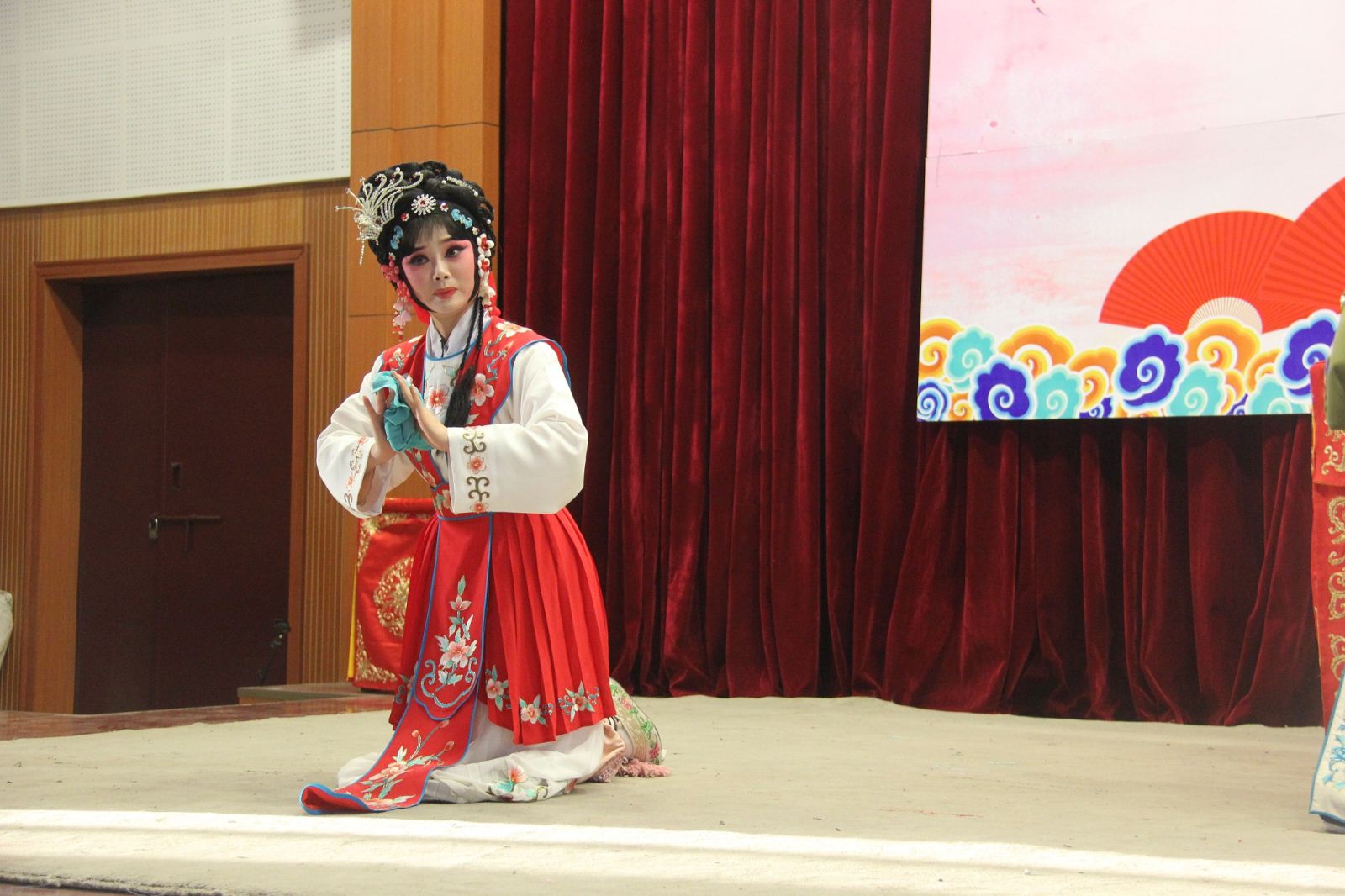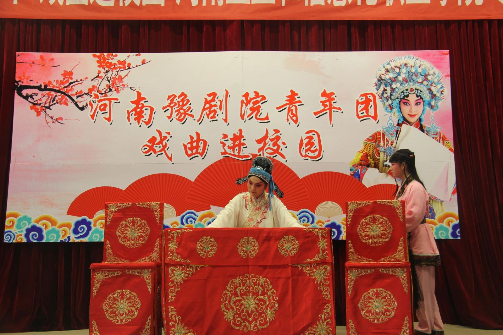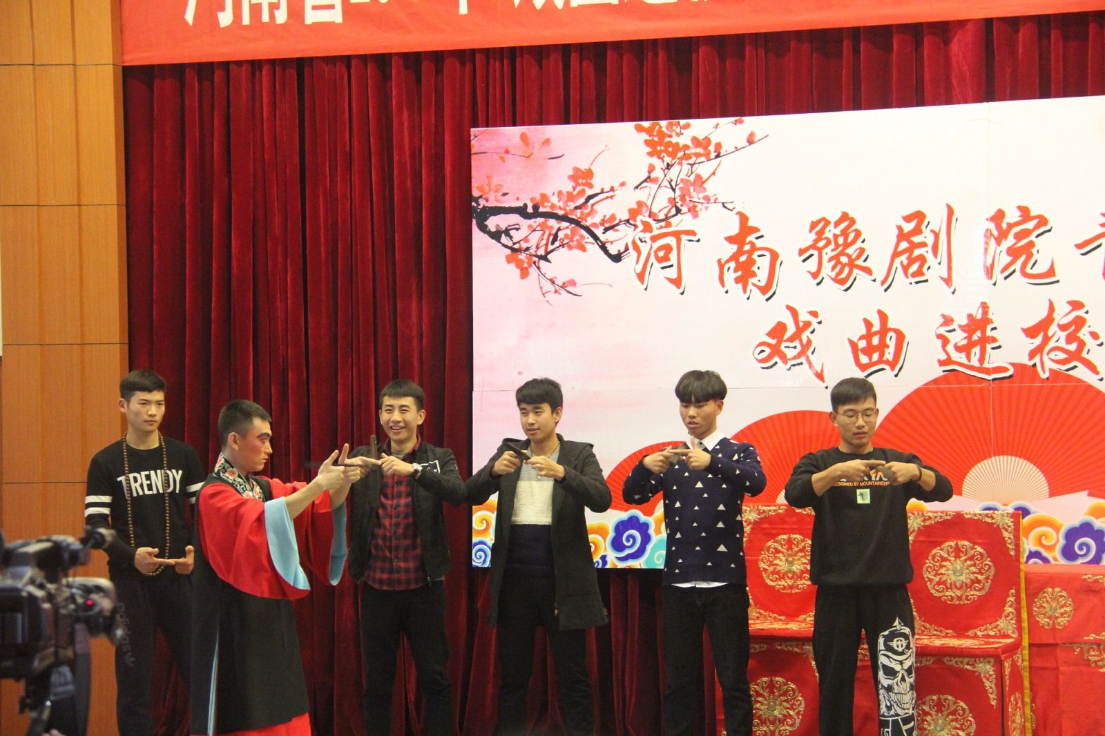 活动伊始,省豫剧青年团主持人李焕娜携乐队老师及多位优秀青年演员采用戏曲知识讲授与精彩表演有机结合的方式,向广大师生生动讲解了豫剧相关知识,并邀请多名师生上台体验豫剧表演,感受戏曲文化的魅力。随后,演员们精彩演绎了折子戏《包青天——见皇姑》和《西厢记·拷红》,优美的唱腔,细腻精湛的表演,将人物形象和故事情节表现得酣畅淋漓,赢得了台下观众的阵阵掌声、喝彩声。