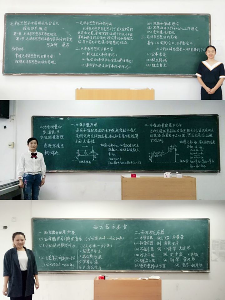 为组织、举办好本次教师粉笔字板书比赛,鼓励更多的教师参与比赛,学院专门成立了活动领导小组,并要求近三年以来新进教师必须全部参赛,其他教师自愿参赛。最终来自9个系部的59名教师参加了本次比赛。按照比赛要求,全体参赛教师均提前选择了板书内容,精心设计了板书结构,并在规定的时间内完成了板书及板书作品的上传工作。从评审结果来看,全体参赛教师的板书作品内容完整,字迹工整,结构合理,体现出较高的审美旨趣和艺术个性,充分展现了我院教师在板书设计方面的创新水平和实践能力。经比赛评审小组集中评议,最终桑苏、杨瑞红两位老师荣获一等奖,陈亚捷、朱红波、王国文三位老师荣获二等奖,杨慧慧、寿先淑、张耀辉、焦强、李元元老师荣获了三等奖,李致龙、毋亚琦、赵哲霏、黄磊、王璐等老师荣获了优秀奖。
