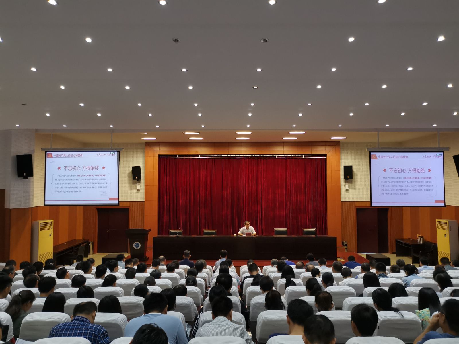 张书记首先从中国共产党人的初心和使命谈起,结合中共中央、河南省委对本次“不忘初心、牢记使命”主题教育工作的部署和要求,通过列举新中国成立70周年以来中国在政治、经济、文化、外交等多方面取得的一系列成就,向同志们阐述了中国共产党的初心和使命是为中国人民谋幸福、为中华民族谋复兴。随后,他带领与会党员教师共同回顾1840年以来中国的近代史以及中国共产党的党史,通过大量生动、鲜活的历史故事和史实材料,深刻阐述了中国共产党由小到大,有弱到强,最终肩负起民族复兴、国家富强、人民幸福的历史重任,领导中国人民冲破重重难关,取得革命、建设、改革伟大胜利的原因,就是始终坚守初心使命。站在新的历史起点,面对百年未有之大变局的外部环境,张树岭号召全体党员要不忘初心,牢记使命,共同肩负起中华民族伟大复兴的历史使命,时刻做到心中有党、心中有民、心中有责、心中有戒,做新时代合格的共产党员。