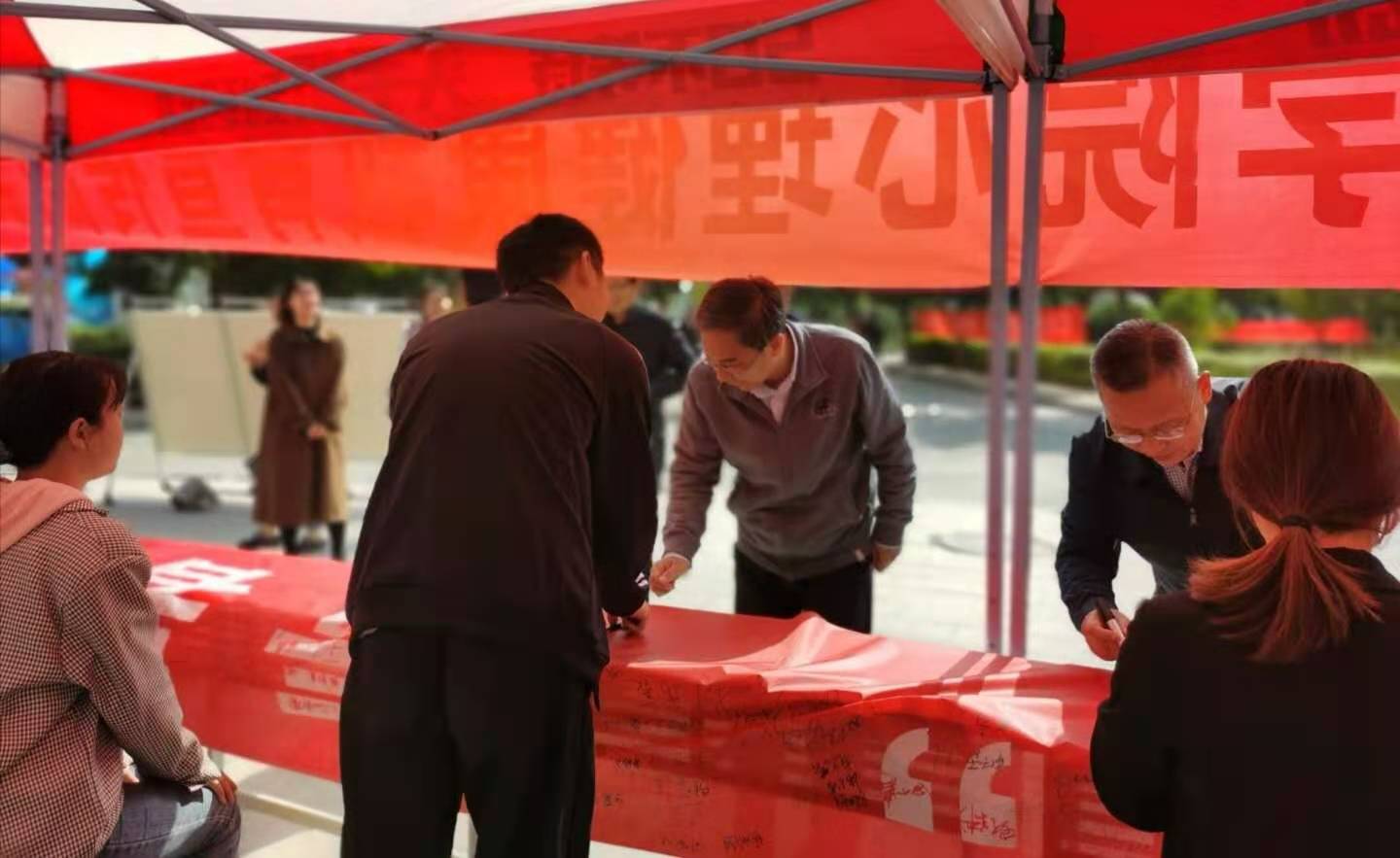 2020年10月19日至23日,我院以“同心抗‘疫’, 青春绽放”为主题,开展了2020年心理健康教育宣传周活动,院领导亲临现场参加签名活动。