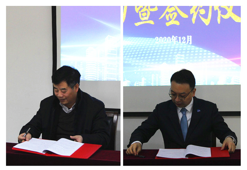 焦洪涛、杨亮分别代表校企双方签约,并共同为双创基地揭牌。