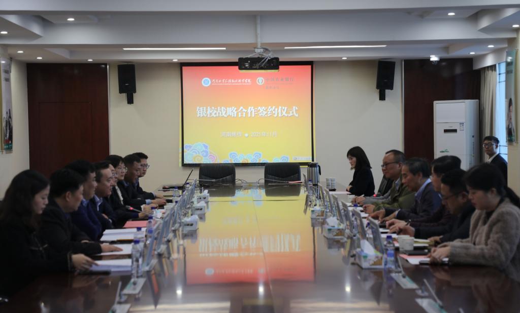 11月11日,我院与中国农业银行焦作分行的签约仪式在农行焦作分行十二楼会议室举行。中国农业银行焦作分行行长陈相绍,副行长栾华、张红旗、张静;学院党委书记张树岭、院长焦洪涛、党委委员张红兵及双方相关负责人参加仪式。签约仪式由张红旗主持。