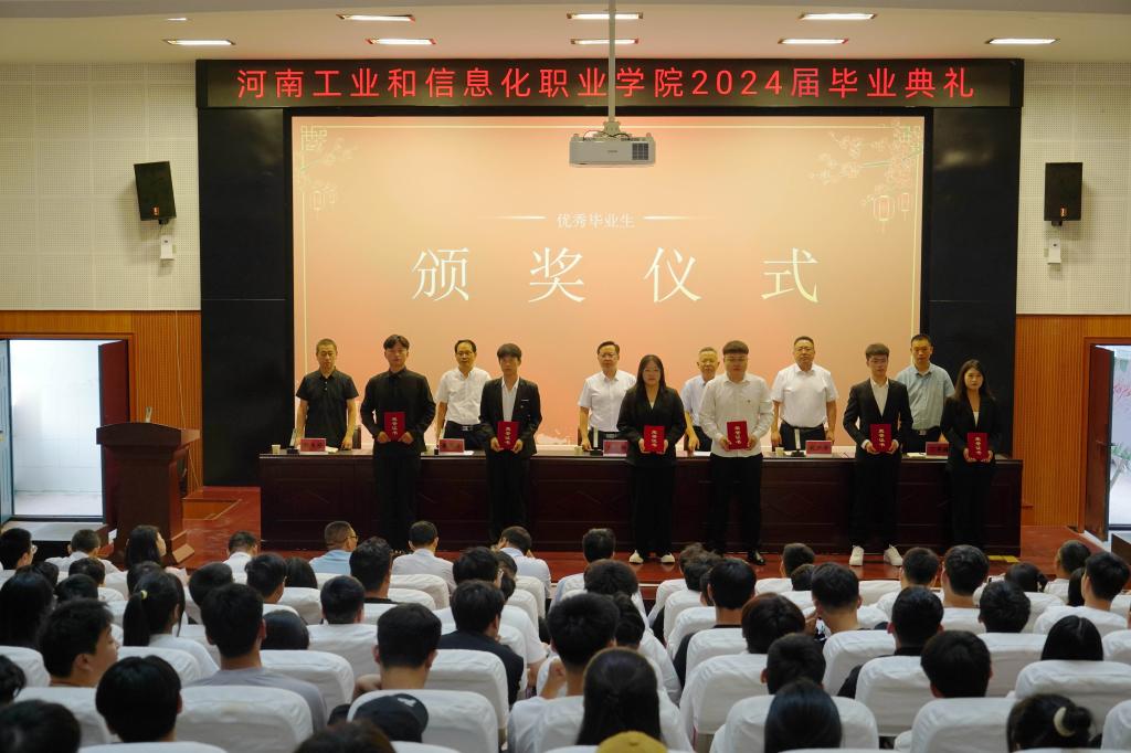 魏道清宣读了《河南工业和信息化职业学院关于表彰2024年校级优秀应届毕业生的决定》,并为优秀毕业生代表颁发了证书。