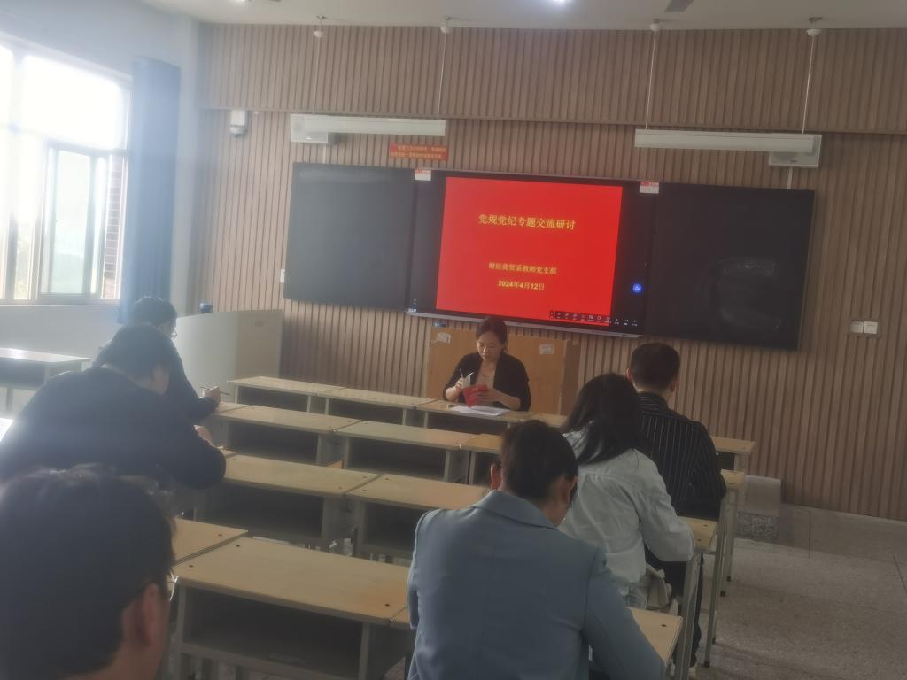 4月12日,财经商贸系教师党支部在2512教室组织开展了党纪学习教育会议。此次活动旨在进一步加强教师的党性修养,提高党员教师的党规党纪意识,确保教育教学的健康发展。本次会议由郑娟书记主持召开,全体教师党员及部分教职工参加。
