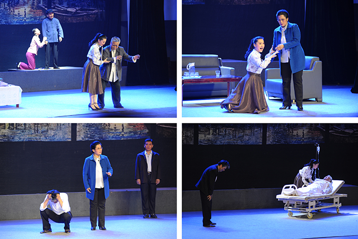 演出结束后,四所高校的领导上台与演员亲切握手并合影留念,感谢他们的精彩演出。